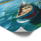 Väggmålning av en båt i havet och en frakt på t poster