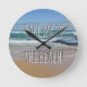 Ge ditt hem lugn med den dekorativa strandinspirerade väggklockan, med ett foto av rullande akvatblått hav vinkarare och guldsand. Ord, "Ta mig till stranden" står i snyggt, kustvit och svart text. Anpassa den här klockan genom att välja mellan andra storlekar eller alternativet grått händer.