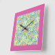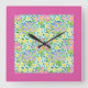 En mycket söt kvadratisk väggklocka, med en mönster av rosa, gult och blå priroser, från en handmålad vattenfärgsdesign av Judy Adamson. Den här klockan är i Rosa, men det finns andra färg.