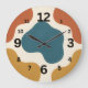 Få en groovy känsla med denna retroabstrakta organiska väggklocka! Denna funkiga, konstnärliga design har stora, flytande "blob"-former i en kuraterad Mid-Century Modern-palet med djup teal, terrakotta-rust och senapsgul på en krämfärgad bakgrund.