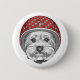 Denna design presenterar ett porträtt av en Yorkshire Terrier som ha på sig en kricka och den röda polkaen prucken hjälm.