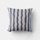 En klassisk, med en vriden, brinnande och färsk, originalgrafik av ZoeSPEAK på denna 16-tums Dekorativ kudde är en total mönster av mörk blått och vitt rand, en del bred och en del tunn. I mitten av konstruktionen är rand vågigt, krökt som vatten, ge tyget och redan "idisslat" utseende.