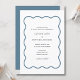 Vågigt Gräns Modern Retro Dusty Blue Bröllop Inbjudningar