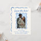 Vågigt Hand plockade Blue Gräns Spara datumfoto Inbjudningar