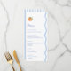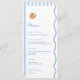 Den här menydesignen är en del av en ny samling baserad på mitt populära citroninbjudningsintervall "Amalfi". Inbjudan är uppdelat, med ett vågigt gräns, en enkel gemensam orange med löv och ett sommarblått och vitt rand bakåt. Där "menyn" i ord är kan du ha gästen namn i stället, så att menykorten också kan dubbla som platskort.