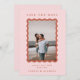 Ett meddelande från trendig bröllop spara datum som innehåller ditt favoritfoto i en terracotta vågigt scallop ram på en rosa och terracotta-text. Lägg till webbplatsen bröllop och QR-koden till motsatsen.