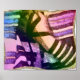 Vågigt digitalmålning av hand och tefillin mot en färgtallit. Regnbågstoner.
