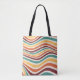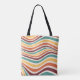 Vågigt rand, grunge Tote Bag. Retro. Abstrakt färglöst struktur i trendig groovy psychedelic stil. Vintage