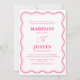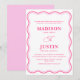 Den här inbjudan att Vågigt Rosa bröllop visar en återinspirerad utformning med handdragen kurvor och bläckfisken i pulserande rosa och röda nyanser. Contemporaryns kalligrafi lägger till en snyggt, personlig beröring, skapar perfekten för ett modernt men nostalgiskt bröllop-tema. Perfekt för par som vill ha en unik och lekfull inbjudan. Den här bröllop-reflexdesignen utmärker sig med sin konstnärliga och vågigt charm.