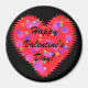 Ett vågigt rött Valentine Heart med färgstarka reflektorer på svart bakgrund. Anpassadets text säger "Glad Alla hjärtans dag!"
