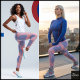 En kvinna föreställer färgstark rosa och blå geometriskt mönstrade baljor som visar en unik våginterferensdesign.