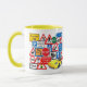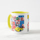 Dessa färgstarka vägskyltar från Förenade kungariket, och en smart bil för gult, barn borde njuta av detta färgstarka mugg!