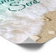 Detta Hitta Din Plats bröllopsskylt är inspirerad av stranden och accentuerad med turkosa havsvågor, strandsand, sjöstjärnor, sanddollar och snigelskal, vilket gör den perfekt för strand-, tropiska eller destinationbröllop. Den är en del av Turquoise Waves Wedding Collection och koordinerar perfekt med det vikta platskortet Beach Waves Sandy Toes Salty Kisses.