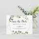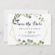 Detta geometriska vågrät med den tropiska grönten guld är perfekt för ett modernt bröllop. Utformningen har handmålade vackra löv för grönt, som lägger till ett guld-geometriskt ram.