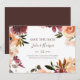Det här vågrät för blommigt av burgig orange sparar datumet är perfekt för ditt , mörk grönt och guld trädgårdsbröllop. Utformningen har en krans eller bukett med minimalistisk vattenfärgspersika, dammig ro, lila och ljusa rosa blommigtar tillsammans med koppar, evergreen, gult och rost färgad grey. Blommorna i den här designen är vallmo, ro och peony. Utformningen är perfekt för ett enkelt landsbyggsbröllop, elegant vår, sommar eller fall. Sök efter andra matchande/samordnande bröllop-stationer i resten av samlingen.