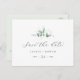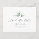 Den här eleganten är ett grönt vågrät om du sparar datumet som vykort är perfekt för ett enkelt bröllop. Den moderna elegantens utformning har en naturlig botanisk arrangemang av eukalyptus, löv och växter med en subtil myntfärgad vattenfärg i grönten tvättar accent.