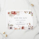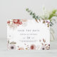 Det här enkla vågrät för att spara datumkortet är en perfekt för ett bröllop som är ett orusbart blommigt. Den vimska boho-konstruktionen har rosa, blommor från burgundi och marsala med en moody och romantisk ton.