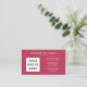 Dubbelsidig magenta av anpassade med vit text: framsidan med ditt foto och din information, baksidan med företagets logotyp och information. Ren, enkel mall, lämplig för företag, företag och organisationer, stor eller liten. affärskorten för anpassade på vågräts dubbla: framsidan med ett fyrkantigt foto och dina uppgifter, baksidan med företagets fyrkantiga eller runda logotyp och företagsinformation. Ren, enkel mall, lämplig för företag, organisationer eller företag, stora eller små. Anpassa den här diy-mallen med ett fyrkantigt foto, namn, titel, mobila nummer, e-post adress och social. Det finns utrymme för ytterligare information eller instruktioner. På baksidan uppdaterar du mallen med kvadratisk eller rund logotyp, företaget namn, slogan eller tagline, adress, mobila nummer, e-post adress, social-media och ytterligare information som du vill inkludera. Underbar för anställda, försäljningsverkstäder, verkstäder och annan personal. Andra format för affärskort och färg finns tillgängliga.