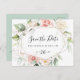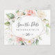 Det här geometriska vågrät för lövning i guld sparar datumet för vykort är perfekt för ett bröllop i Österrike. Konstruktionen har handmålad botanisk grönt och guld blad med rosa, , vita blommor, med adorering av elegantens geometriska ram.