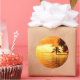 Runt fotodekal med ett vågrät handflatan träd som hänger över det pacifistiska havets vatten under solnedgången på en tropisk ö.