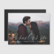 Det här spara datum magneter innehåller ett handskrivet"pennanteckningsmeddelande" över ett foto på vågrät, perfekt för bröllop med en avslappnad och foton som har mycket tomt utrymme överst.