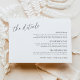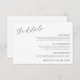 Lägg till viktig information till din bröllopsinbjudan med det här moderna kortet för minimalistisk detaljinformation. Perfekt för att dela information om extra, t.ex. platsanvisningar, logi, transport, klädkod eller andra händelsespecifikationer, det här vågrät-kortet är enkelt att anpassa efter dina behov i kostym. Det är en elegant och ett enkelt sätt att informera gästerna och garantera ett smidigt firande.