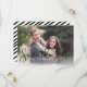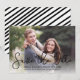Modern fotospara datumkortet med "Spara datumet" i modernt skript i svart mot ett mycket ljust, delvis genomskinligt, vitt övertäckt överdrag. Kortet innehåller en modern svart och vit baksida. Anpassa den genom att ersätta platshållartexten och ersätta exemplet/platshållarfotot med ett eget foto. Om du vill ha fler alternativ, till exempel att ändra teckensnitt, klickar du storlekt på knappen "Anpassa". *Observera att Zazzle Watermark som visas i zoomförhandsvisningen INTE visas på den färdiga tryckta produkten. © Rosewood and Citrus