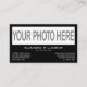 affärskort för anpassade på dubblan: på framsidan med ett stort foto och stor information, baksidan med företagets breda logotyp och information. Ren, enkel mall, lämplig för företag, organisationer eller stora eller små företag. Anpassa den här diy-mallen med ett brett foto, ditt namn, titel, mobila nummer, e-post adress och social-media. Det finns utrymme för ytterligare information eller instruktioner. På baksidan uppdaterar du mallen med en bred logotyp, företaget namn, slogan eller tagline, adress, mobila nummer, e-post adress, social-media och ytterligare information som du vill inkludera. Det finns även andra format för affärskort, t.ex. kvadratfoto och logotyp.
