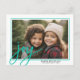 FRONT DESIGN: vågräts foto är ramat med ett vitt och blått gräns. Ett modernt sätt att söka efter ett helgdag-fotokort med stor "glädje" i ett funky, handskrivet skript i blått färg. För avancerade användare kan du gå till designområdet och ändra färg. Bakgrunden är vit. Ett område för hälsning och namnteckning av familj ligger under bild.