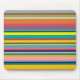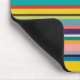 Den här musknappen har en design av vågrät rand i nyanser av blått, grönt, brunt, lila, rött, gult, orange och rosa.