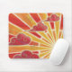 Guld och orange sol sätter upp och vinden blåser rött och rosa moln över himlar. Mousepad med en utformning av guld, orange, rött, rosa och vitt anpassade som gör att du kan anpassa dig till din egen text, bilder och dina idéer. Jess Perrys ursprungliga färgpenna och metalliska bläck teckning.
