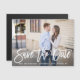 Skicka vårt landskap bild spara datum magneter med ett modernt penselskript för att informera dina gäster om att stänga av ditt bröllop-datum. Tips! Om du behöver ändra ordalydelsen som finns i skriptteckensnittet kan du gå till avsnittet "Anpassa den här mallen" och sedan klicka på "Anpassa ytterligare" i grund. Du kan radera vilken text som helst som du vill använda i bilder och lägga till en egen text i ställe med hjälp av knappen "Lägg till text". Se till att checka ut vårt stora urval av foton spara datumkort, vykort och magneter genom att bläddra i vår Bild Spara datumsamling!