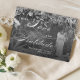 Ett vågrät, svartvitt tack som du ger designat med utrymme för att passa en hjärtslitad, handskriven anteckning på baksidan. Det här kortet är i svartvitt klassiskt men modernt med ett skript-stil-teckensnitt på framsidan för att komplimentera förlovning- eller bröllop-foton.