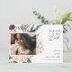 Vi designade det här vågrät för fotot på vita Blommigtar för att spara datumet för att slutföra din tropiska mörk bröllop. Med den bohemiska vattenfärgen grön till den moderna boho vinterblomman, inklusive protea, dahlia och torkade lotus, kommer utformningen säkert att släcka din moody, minimalistiska grönt och vita tema. Ändra texten och lägg till ett foto för att göra den till en egen. Se också till att söka igenom resten av samlingen för att hitta samordnande element som kommer att föra samman hela bröllop! https://www.zazzle.com/collections/white_floral_collection-119896729923706651