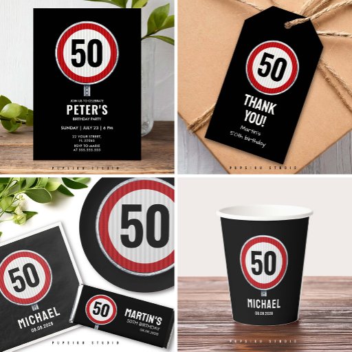 Anpassa åldern för perfekt och drivrutiner till förmån för tematisk födelsedagsfest. Röd rund trafikventitetstecken med ett modernt grafiskt stil. Kontrollera matchningssamlingen för SAMORDNINGSOBJEKT. Originalteckningar efter PUPSIKU STUDIO. 100 % unik produkt