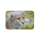 Den original- konstdesignen av en vaken afrikansk Cheetah av konstnären och formgivare Carolyn McFann skrivev ut på en kvalitets- badmatta för stora kattfläktar.