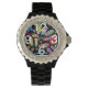 Flera ursprungliga vattenfärgsmålningar av Anne Ormsby med färgfulla flip-flops är spridda på denna klocka.