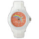 Färgfulla regnbågsbildsflickor tittar med ljus orange bakgrund. Anpassa med ditt namn läser Missy för närvarande.