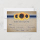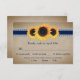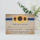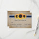 Rustic marin blått kort och solroskort med måltider som är idealiska för en marin blå rustik bröllopsfest inspirerad av solrosblommor.