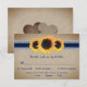 Rustic marin blått kort och solroskort med måltider som är idealiska för en marin blå rustik bröllopsfest inspirerad av solrosblommor.