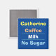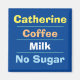 Office-arbetaren Choice of Drink, Mjölk & Sugar Preference magnet. Magnet som visar tjänstemannens Namn plus deras val av kaffe eller tea, Mjölk och sockerpreferens
