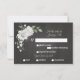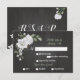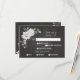 Mjukt botanisk OSA kort med anpassade med måltider. Vita blommor med grönt löv på svart bakgrund