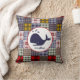En kudde som presenterar en illustration av ett val över en madras plädbakgrund. Personifiera med namn.