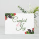 Här är ett enkelt men elegant budskap för högtiden. Välbefinnande & Glädje. Detta meddelande är i ett skrifttypiskt teckensnitt. I motsatta hörn på korten finns grenar av vintergrön med kotte och bär. På baksidan av kortet finns en textruta som låter dig lägga till ditt eget högtidsbudskap. Om du föredrar det, kan du ta bort rutan och skriva ditt meddelande.