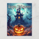 Det här kreativet Happy halloween-vykortet innehåller en illustration av en spooky tittar pumpa. Du kan justera alla tillgängliga alternativ som du vill.