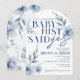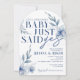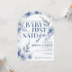 Vald baby sa bara ja akvarell vit blomma Förlovnings- eller bröllopsfestinbjudan. Med vackra eleganta dammiga skifferblå akvarellblommor. Finns tillgänglig tryckt med kuvert eller för högupplöst digital nedladdning.