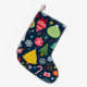 Den här bilden är ett sjudande och roligt mönster med en härlig mängd jultemabilder. Mot en mörk blått bakgrund visar mönster färgade Julgranar som är adorberat med ljus och prydnadsföremål, olika former och storlekar, polkagrisar, snöflingor, presenter och festliga dekorationer. Den handritade stil i illustrationerna ger en lekfull och visuell beröring till den övergripande utformningen.