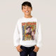 Zoe SJUNGOR till Wagner! Den ursprungliga teckningen av ZoeSPEAK på detta T-Shirt har en porträtt till kompositören Richard Wagner, som bär en beret, i ett guld-ornat ram. Porträtt hänger på gult tapet med rand och rödtomatband. Ett foto av Zoe the Bilingual Hund finns framför porträtt. I texten står det mycket Wagner på engelska och Fransk.