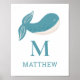 Djurplantskolor poster med söt blåval och monogram för pojke.