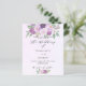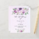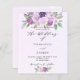En violett, vattenfärgad lavender-bakgrund. Dekorerad med violett och lila vattenfärgade blommor och grönsak. Anpassa och lägg till information om namn och party. 1 lakan = 1 inbjudan tryckt kant till kant.